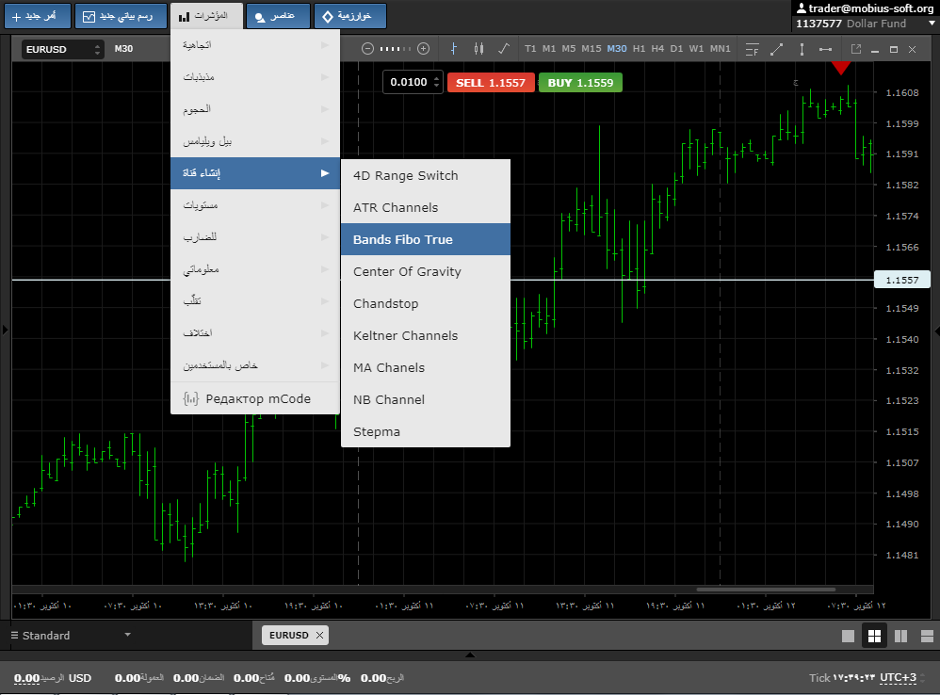 In this overview we would like to tell about the Bands+Fibo_True indicator which draws channels behind the price chart. It is placed in the section Indicators "Channel building"