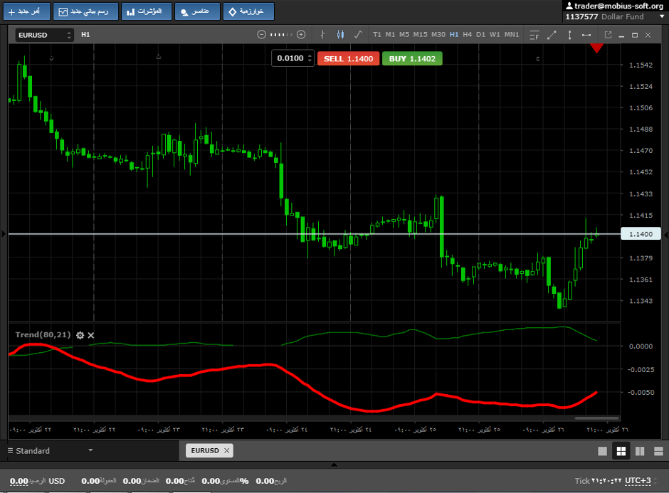 In operation of the Trand indicator are used two lines. The red line serves for determination of the direction of movement - it is either the ascending, or descending trend.