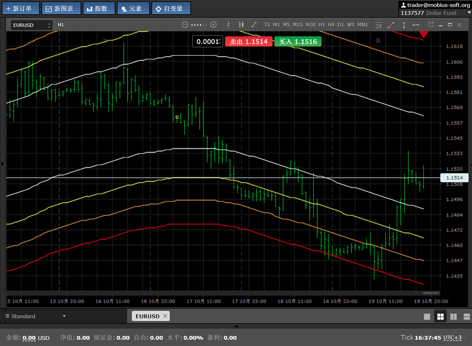 根据该指标可以基于通道边界线交易,并在同颜色线处关闭。