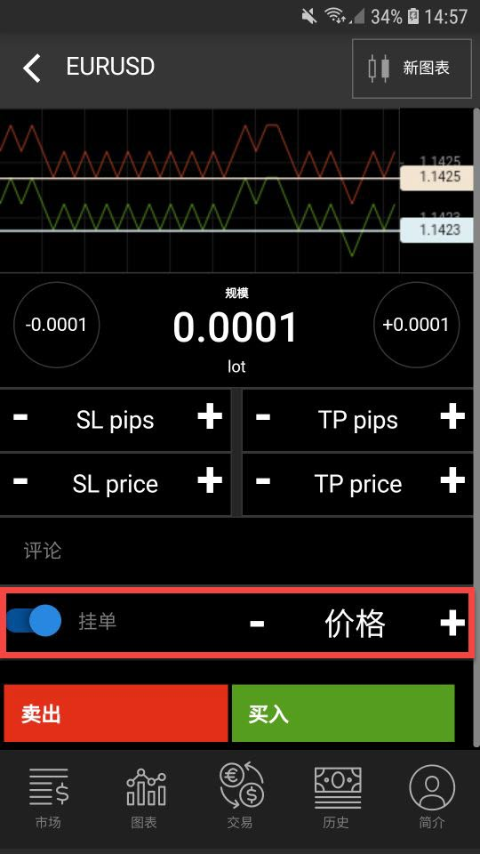 Чтобы открыть ордер в программе Mobius Trader 7 для Android нужно открыть вкладку открытия нового ордера и выбрать BUY или SELL в зависимости от того в какую сторону хотите торговать.