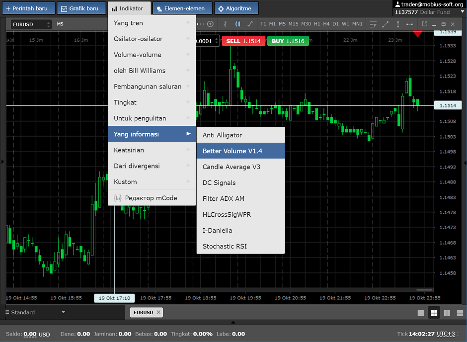 Salah satu indikator terkemuka adalah indikator Better Volume 1.4, yang membantu lihat bukan hanya informasi tentang volume tetapi informasi tentang perubahan tendensi yang jangka pendek di pasar.