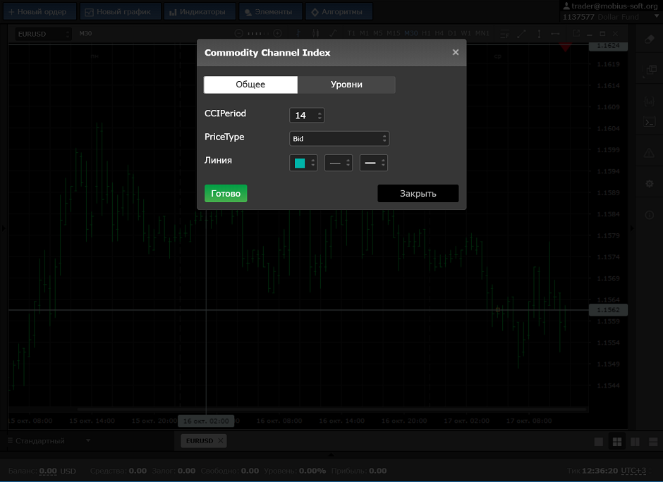 В настройках можно выставить период, сменить цвет, ширину и вид линии, указать значение уровней.