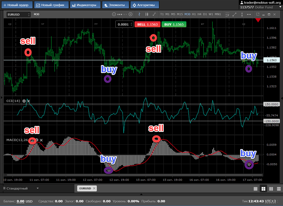 Индикатор CCI хорошо сочетается с индикатором MACD, так как совместные показания этого дуэта будет очень продуктивным.