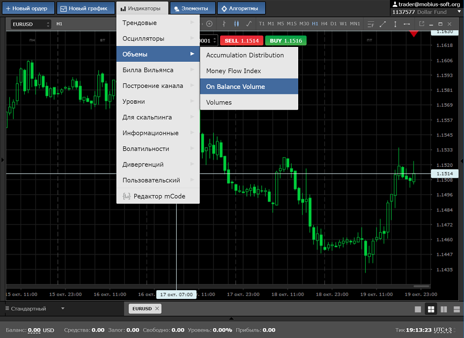 Представляем вашему вниманию индикатор OBV (On Balance Volume), задача которого отслеживать динамику изменения объема по графику цены.
